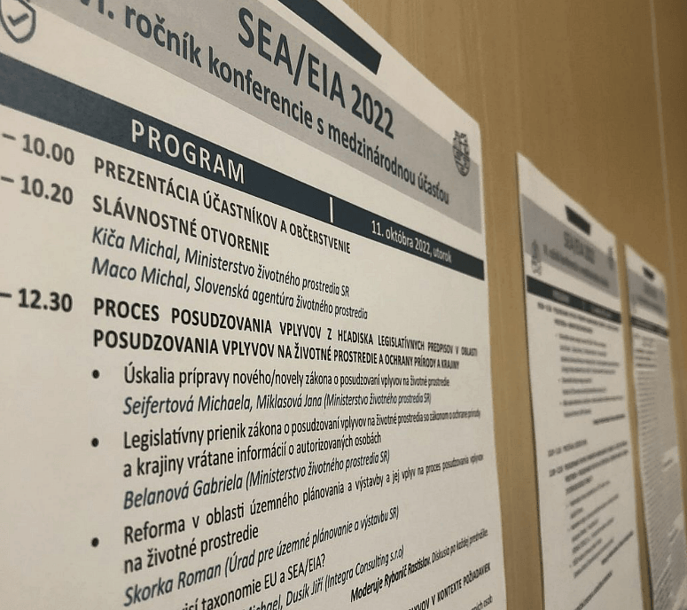 11.-12. októbra sa konal VI. ročník konferencie SEA/EIA 2022 s medzinárodnou účasťou, ktorú organizuje Slovenská agentúra životného prostredia. Cieľom konferencie bolo vytvoriť priestor na prezentáciu najnovších poznatkov a skúseností v rámci procesu SEA/EIA na úrovni EÚ, SR a v okolitých krajinách a poskytnúť tiež fórum pre odbornú diskusiu účastníkov konferencie. Tento rok boli témy zamerané na proces posudzovania vplyvov v oblasti ochrany prírody a krajiny.