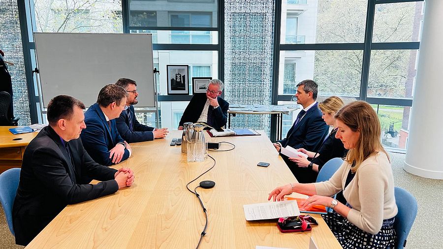 Pracovnú cestu začali stretnutiami s výkonnou riaditeľkou The Crown Estate Judith Everett, ako aj s poslancami z parlamentnej skupiny priateľov Slovenska (APPG), na ktorých náš predseda predstavil riešenia, ktoré pripravuje spolu s odborníkmi ÚÚPV – vytvorenie digitálnej verzie Slovenska a projekt Digitálnej dvojičky (Digital Twin). Na záver sa zúčastnili na rokovaní, kde ich privítal minister pre zvyšovanie úrovne, bývania a komunity Michael Gove.