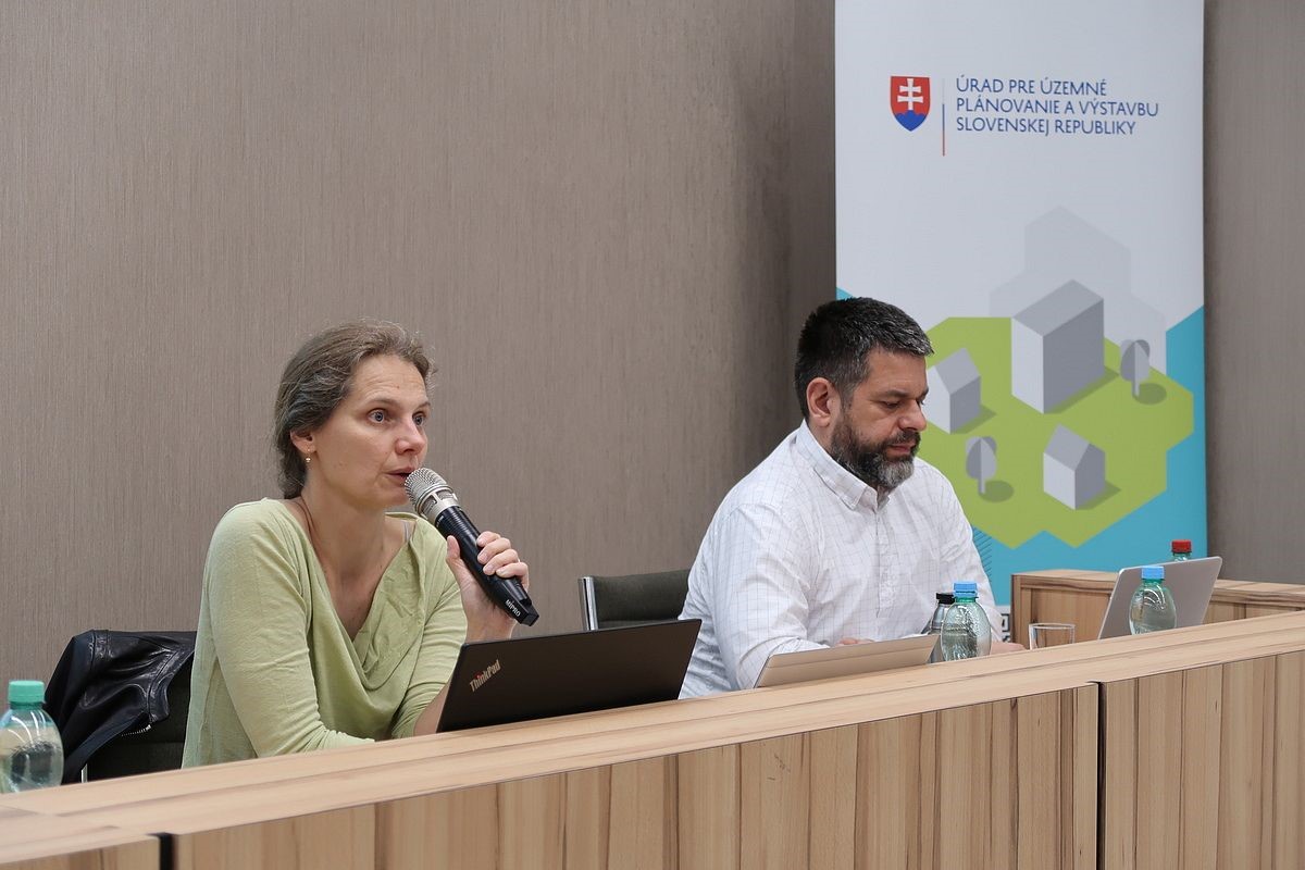 Prvý blok venovaný územnému plánovaniu viedla Milota Sidorová, podpredsedníčka pre územné plánovanie na našom Úrade. Počas svojej prednášky uviedla legislatívny rámec, metodiku, dôležité zmeny, ktoré prináša nová vyhláška a ďalšie kroky.