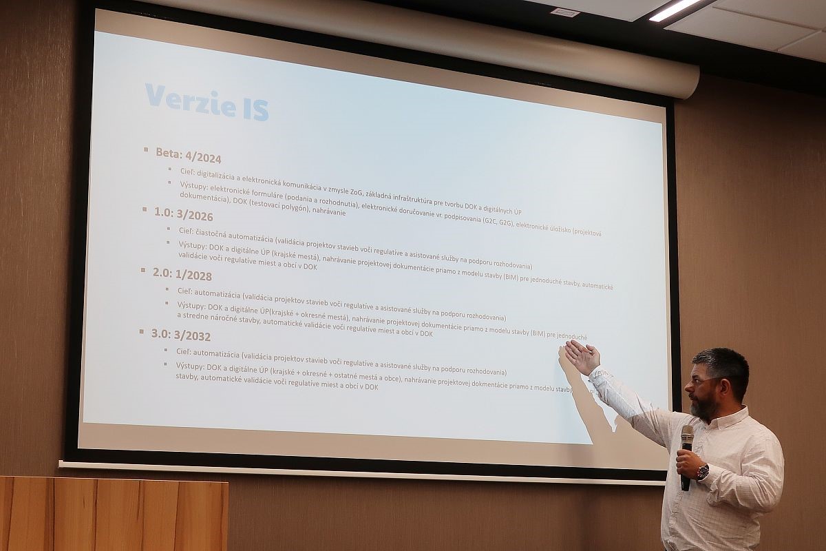 "Projekt stavby obsahuje množstvo dát a na vydanie stavebného povolenia potrebujeme len malú časť z nich. Preto spoločne aj s komorou stavebných inžinierov komunikujeme a pracujeme na tom, aby sme extrahovali z projektu presne tie informácie, ktoré potrebujeme," uviedol Kárasz príklad pre informačný model budovy BIM.
