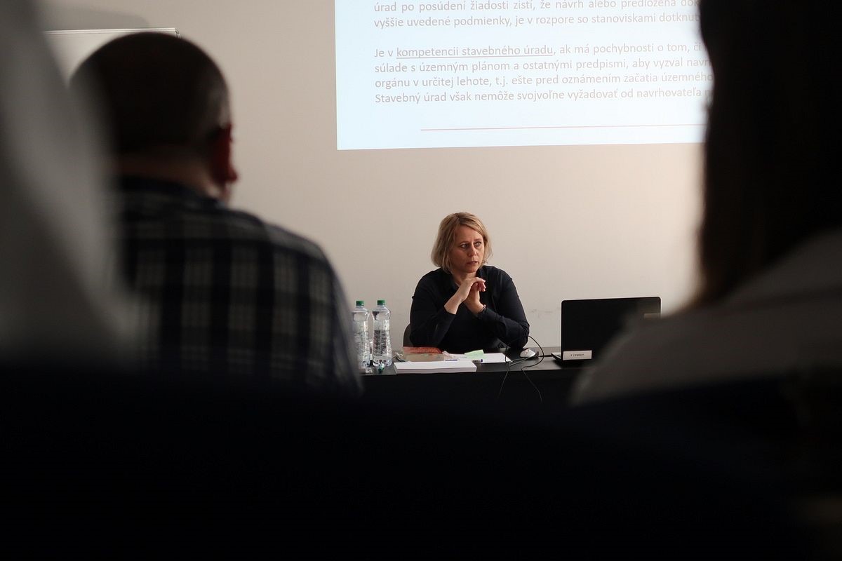 V ďalších blokoch sa odborná príprava zamerala aj na ešte aktuálny stavebný zákon (č. 50/1976 Z. z.) a vyhlášky, ktorých dosah sa bude postupne upravovať až do roku 2026. So svojimi príspevkami za náš úrad tiež vystúpili Viera Rajprichová, riaditeľka Odboru stavebnej správy a jej kolegyne Andrea Fedoronková, Ivana Zemanová a Henrieta Poláková.